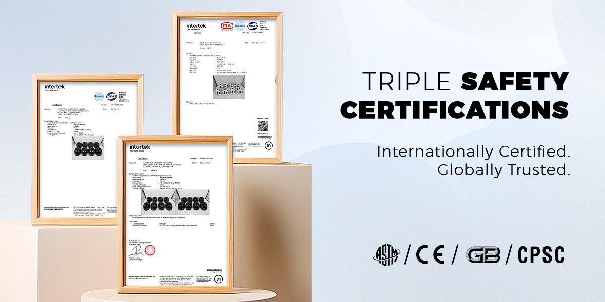 Certified to CE, GB, ASTM, and CPSC — trusted worldwide for reliable protection.