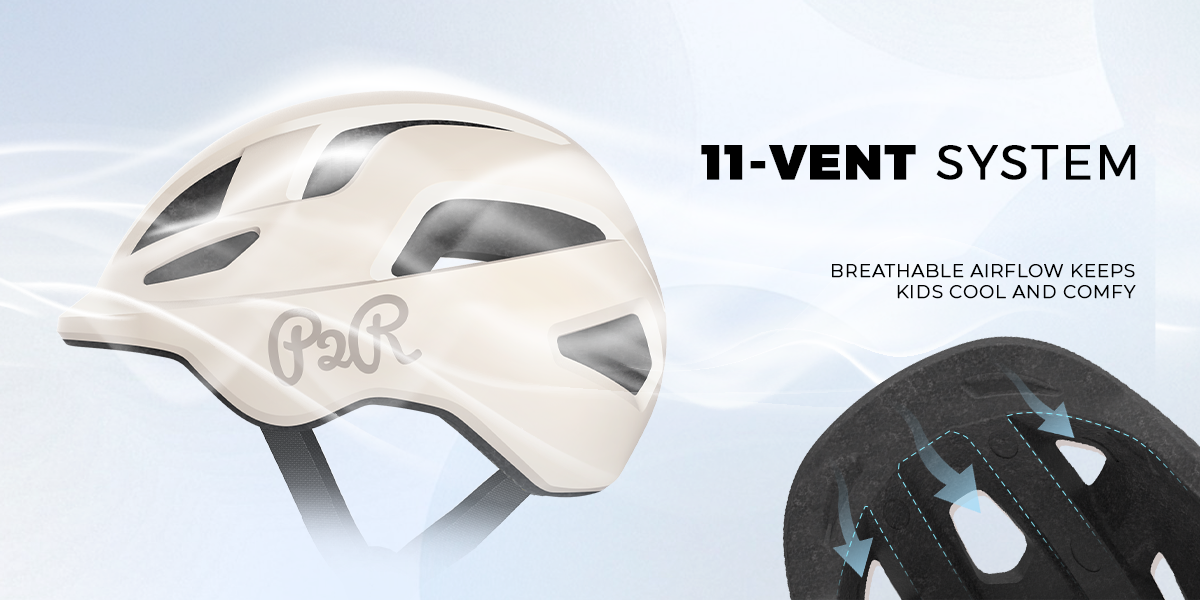 Multiple vents and internal channels keep air moving, helping kids stay cool and comfortable all day.