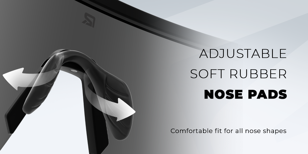 Soft rubber nose pads adjust to any nose shape, giving a secure, slip-resistant fit that stays comfortable even on long or intense rides.